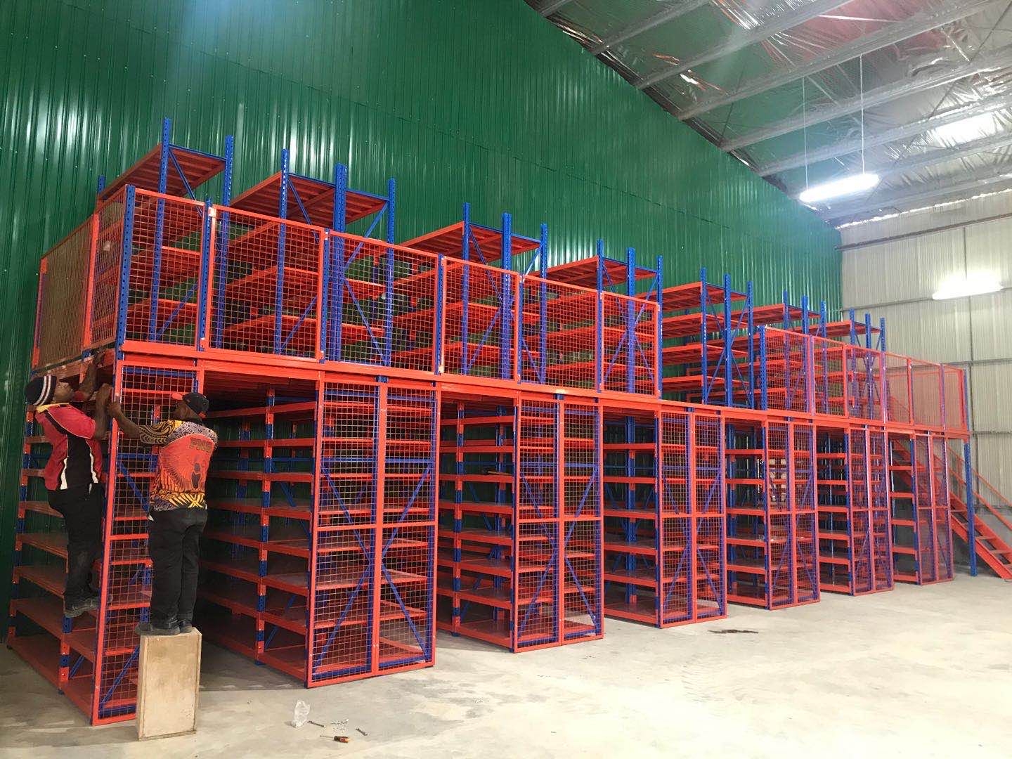 Structural composition: Typically, medium or heavy-duty shelving units serve as the main support, supplemented by floor panels. Floor panels are generally made of cold-rolled steel, checkered steel, or steel grating. The overall structure is prefabricated, requiring no on-site welding, and is also equipped with auxiliary facilities such as stairs and railings.