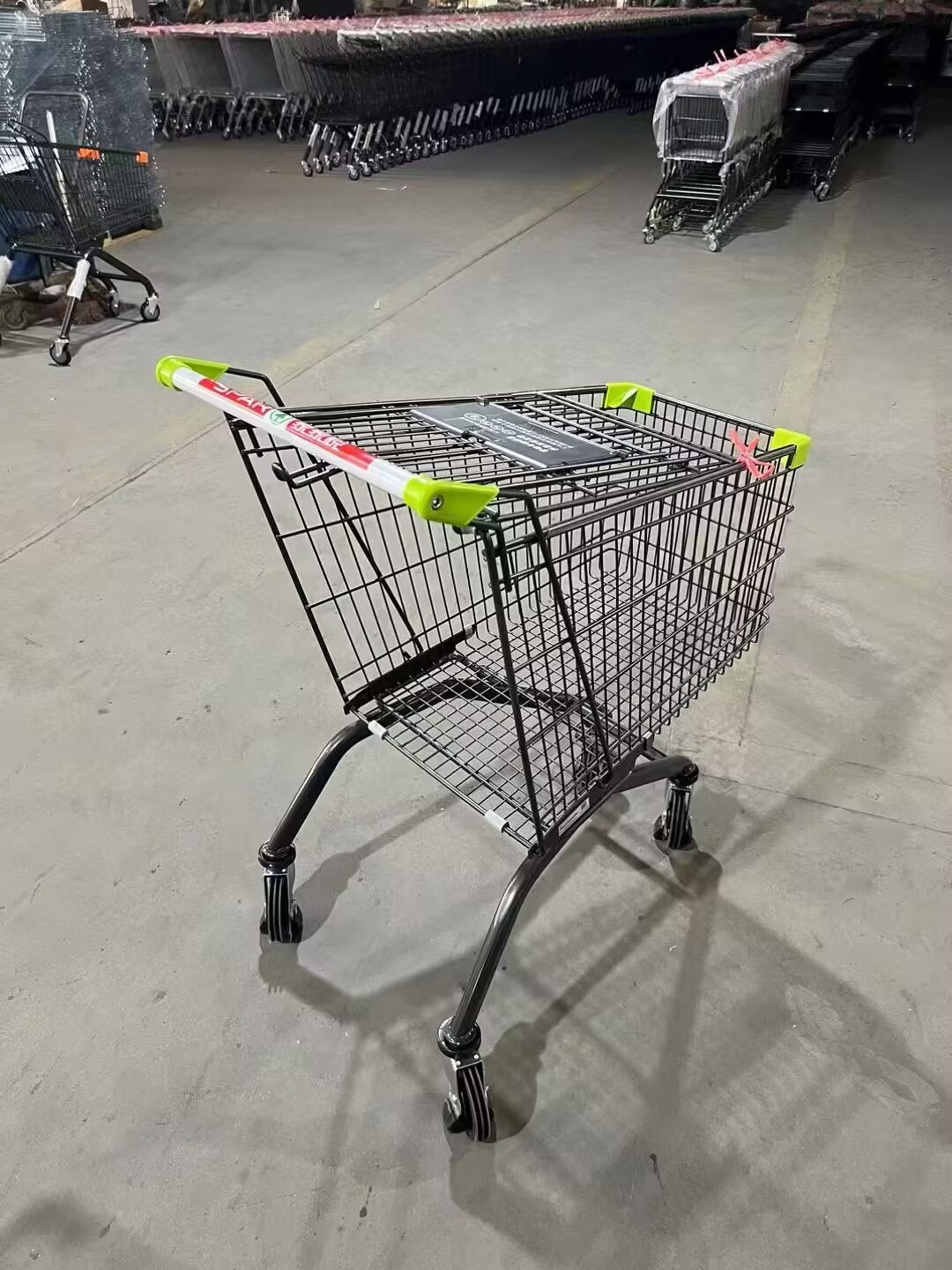 Common types: European/American style pallet carts (large capacity, with child safety seats, suitable for large supermarkets); Japanese/frame type (compact size, can be equipped with shopping baskets, suitable for community stores and convenience stores); Smart/electric models (newly added in recent years, with barcode scanning and payment functions, and mobility features).