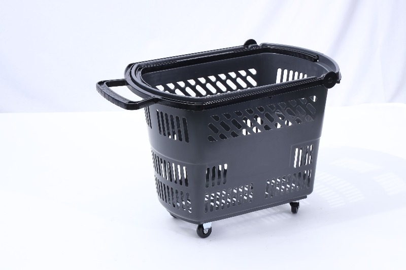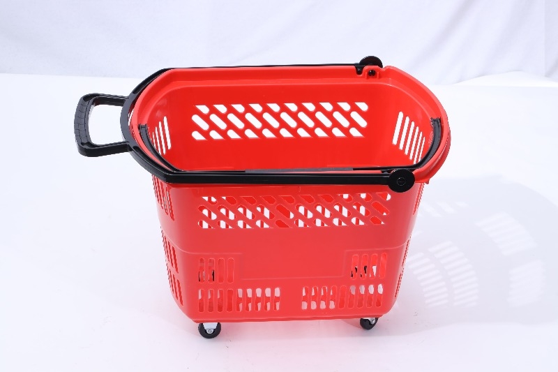 Definition: A supermarket-specific pull-out shopping container, somewhere between a regular hand basket and a large shopping cart. It features four wheels and a retractable/fixed pull rod, allowing customers to easily move through narrow aisles and select items, freeing their hands.