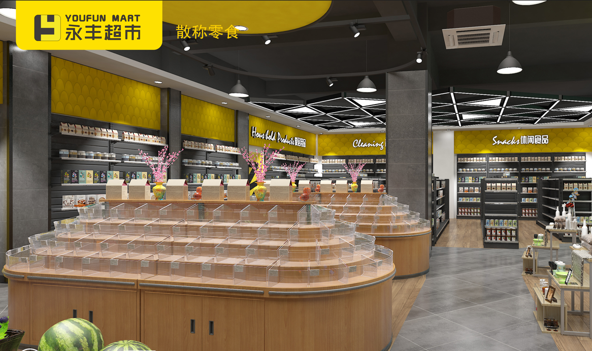 Supermarket shelf design and layout scheme