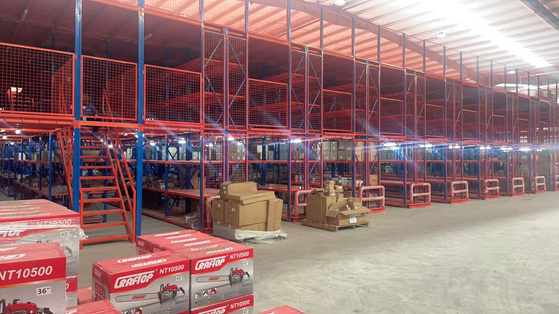 Structural composition: Typically, medium or heavy-duty shelving units serve as the main support, supplemented by floor panels. Floor panels are generally made of cold-rolled steel, checkered steel, or steel grating. The overall structure is prefabricated, requiring no on-site welding, and is also equipped with auxiliary facilities such as stairs and railings.