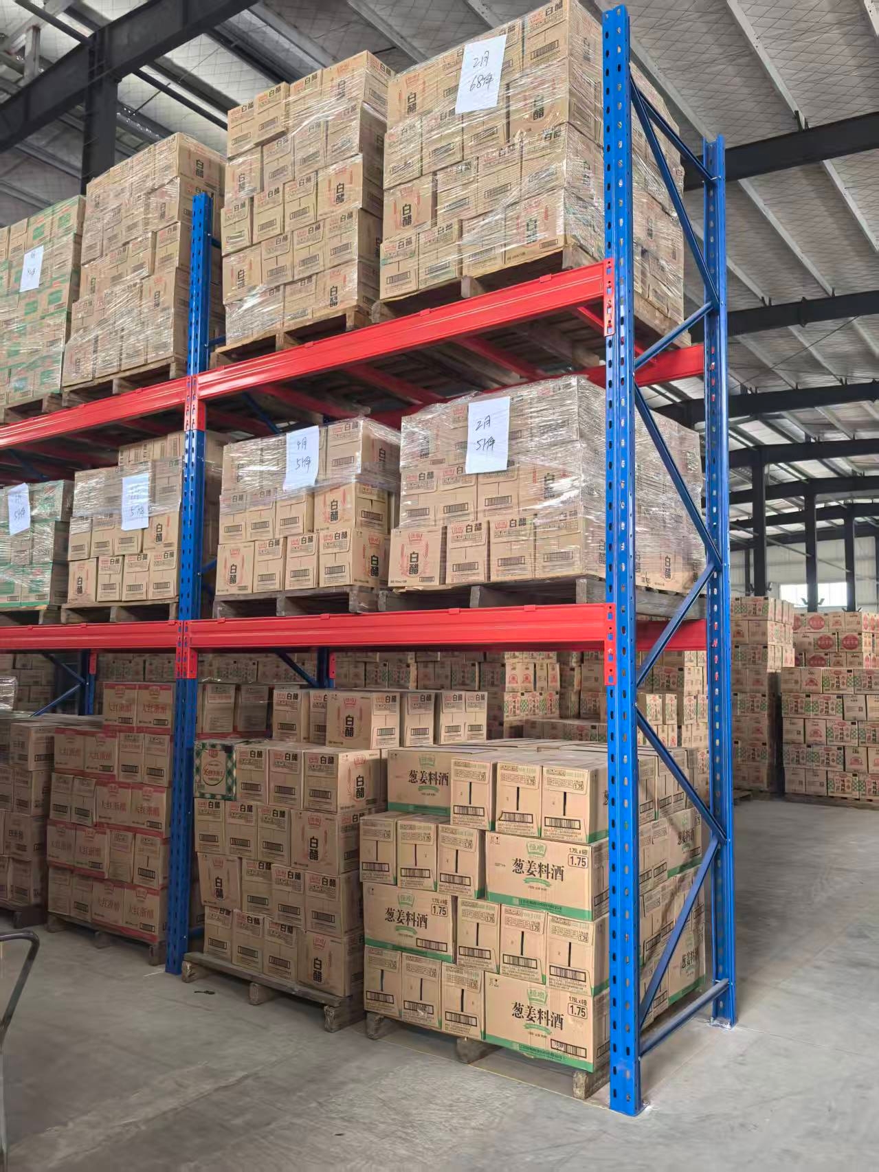 The corrid-type warehouse shelves feature high-density storage, with the first-in, last-out principle. Some goods are picked up by order, with options ranging from 20% to 30%. The picking speed is average, and the clear space for storage can reach up to 60% of the entire warehouse.