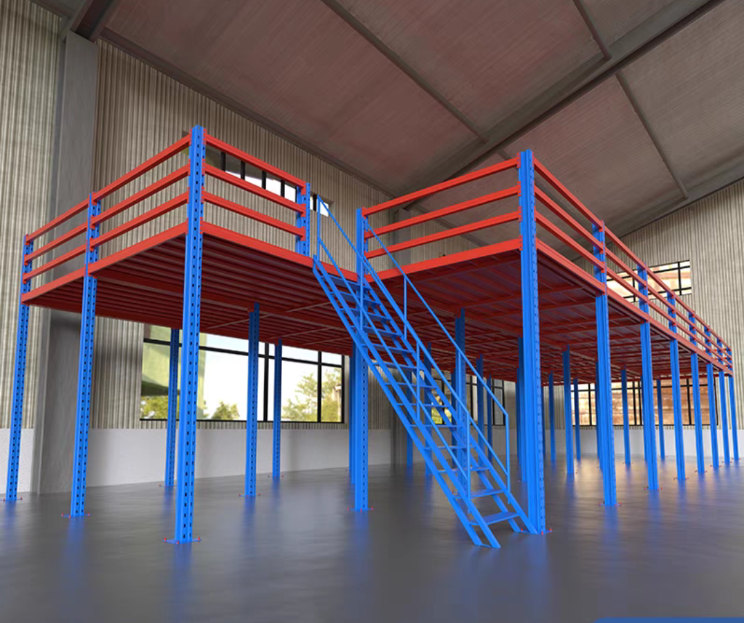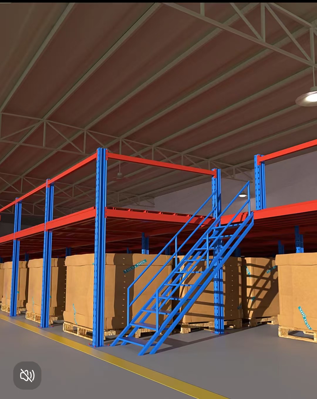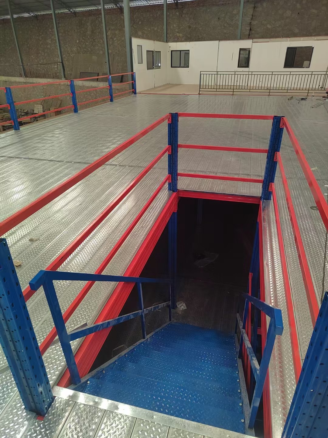 1. The mezzanine shelving platform features a complete, integrated structure and special metal flooring.