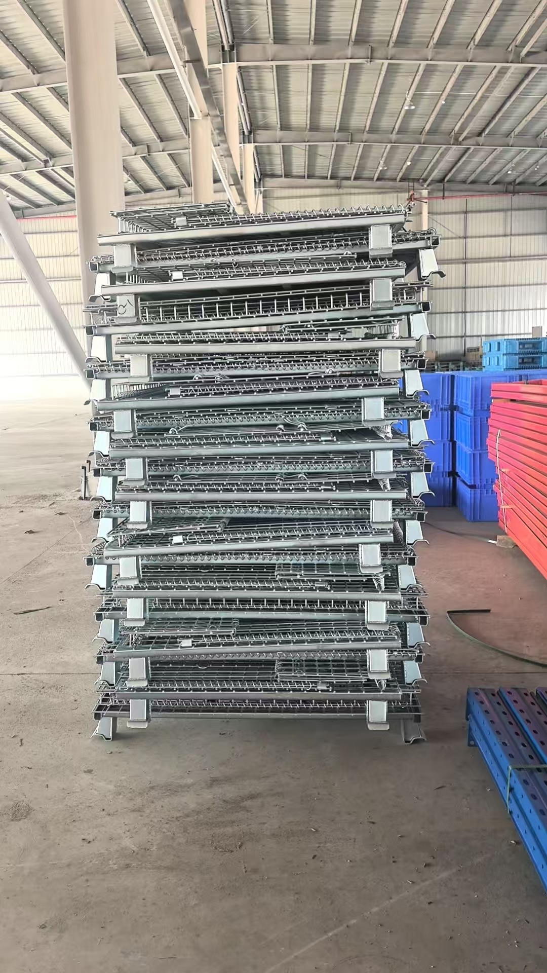 Storage cages, also known as warehouse cages, are a very important type of logistics container in warehousing and transportation. They have the advantages of fixed storage capacity, neat stacking, clear storage at a glance, and easy inventory counting. At the same time, they also improve the effective utilization rate of warehousing space. The storage cages can be freely folded. When not in use, they can also be folded for storage, saving warehouse space.