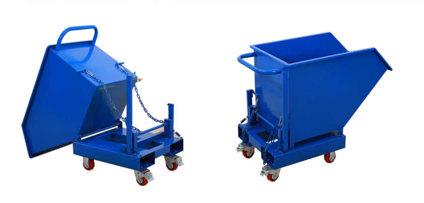 Product Name::Industrial Metal Chip Cart — Workshop Waste Collection & Disposal Cart (Tilting Dump Bin, Material Transport Cart, Chip Collector, Waste Fluid Cart)