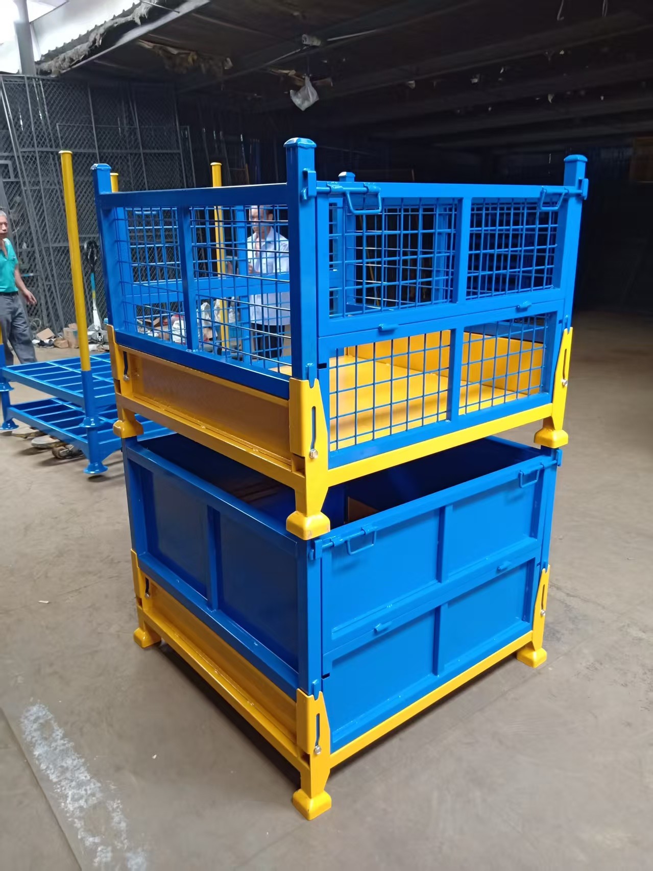 Metal turnover boxes are reusable steel storage containers widely used in factories, warehouses, and logistics centers for storing or transporting parts, raw materials, and semi-finished products. Their core advantages are high load-bearing capacity, stackability, long lifespan, and suitability for cross-company reuse. Common information is as follows: