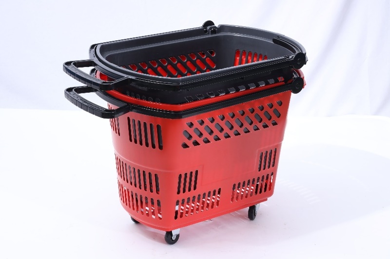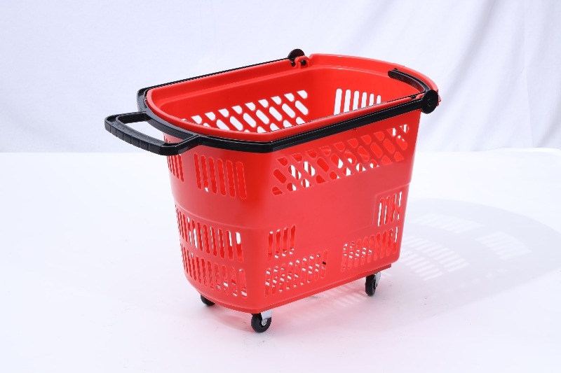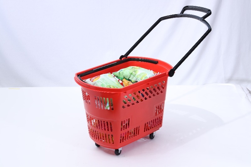 Definition: A supermarket-specific pull-out shopping container, somewhere between a regular hand basket and a large shopping cart. It features four wheels and a retractable/fixed pull rod, allowing customers to easily move through narrow aisles and select items, freeing their hands.